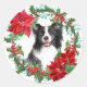 Adesivo Redondo Border Collie Poinsettia Holly Holiday Wreath