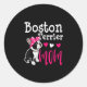 Adesivo Redondo Boston Terrier Dog Mãe Proprietária Cute Engraçado