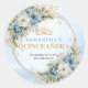 Adesivo Redondo Botanical Dusty Blue Gold Eucalyptus Quinceañera