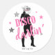 Comece a festa com este divertido design de adesivo "Disco Darlin'", para toda a equipe da noiva, em prata cintilante e rosa. Uma silhueta de cowgirl com chapéu prateado brilhante e tipografia "Disco Darlin'" chamativa, é acentuada por estrelas. Adicione a data do seu evento usando o modelo fornecido. Procure ID925 para ver outros produtos da coleção da moda.