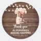 Adoráveis adesivos personalizados rústicos de agradecimento para chá de panela de BOOTS e BEBIDA ESPUMANTE para aquela garota sulista (Texas hold'em). Peônias em tons de rosa bege e marrom em aquarela com botas de cowboy / cowgirl e champanhe espumante com taças. Painéis de madeira, cor de celeiro marrom com luzes cintilantes. Convites perfeitos para qualquer tema de festa de chá rústico / country / sul (fazenda); verão, primavera ou qualquer época do ano. Modelo fácil de editar; cor, texto e fonte podem ser alterados. Veja itens correspondentes para coordenar toda a sua festa!