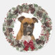 Adesivo Redondo Boxer Dog Red Arco Pinecone Wreath Christmas