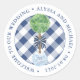 Topiário de Boxwood em uma plantação de gengibre contra fundo de gingham azul. Todos os elementos aquosos pintados originalmente por mim em papel de algodão a 100% antes de serem digitalizados em formato digital. OBSERVE que o texto ao redor da borda precisa ter o mesmo comprimento que a amostra para curvar corretamente. Talvez você precise ser criativo! Por exemplo, use o sinal de 'e' em vez do texto 'e'. Se o seu texto for muito curto, talvez adicione espaços adicionais, se necessário?