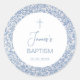 Adesivo Redondo Boy Baptism Blue White Floral Pattern Religious