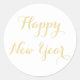 Simples, elegante, personalizado, branco, belo roteiro de ouro falso / tipografia / "Feliz ano novo" caligrafia, folha de autocolantes redondos clássicos. Um belo adesivo perfeito para seus anos novos enviarem mensagens nesta temporada de festas.