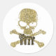Adesivo Redondo Branco Glam até os Ossos Caveira Brilho Dourado