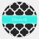 Adesivo Redondo Branco preto marroquino #5 Brt Nome Aqua Monograma
