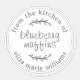 Um adesivo russo e moderno e personalizável de produtos caseiros assados, blueberry muffins, com o texto da cozinha de, muffins de mirtilo e seu nome em um roteiro moderno em um fundo branco. Simplesmente personalize este adesivo de presente personalizado com o seu texto, o nome do produto e o seu nome. Desenvolvido exclusivamente para você pelo Happy Dolphin Studio. Se precisar de ajuda ou produtos correspondentes, entre em contato conosco em happydolphinstudio@outlook.com.