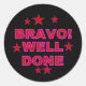 Os adesivos recomendados com fundo preto, cor-de-rosa quente, dizem: "Bravo! Muito Bem"!