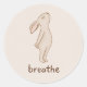 Um adesivo redondo calmante com um coelho minimalista gentil e o lembrete suave “respire.”
