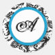 Adesivo Redondo Bright Aqua Damask Monogramas Stickers