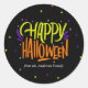 Design de Feliz Halloween brilhante e festivo perfeito como selas de truque ou de plástico, selos de envelopes, etc.