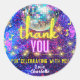 Adesivo Redondo Bright Neon Pink Disco Dance Party Obrigado