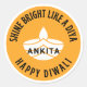 Celebre Diwali em estilo com este adesivo personalizável "Shine Bright Like a Diya - Happy Diwali", perfeito para adicionar um toque pessoal às decorações e presentes de Diwali. Quer você esteja preparando presentes, favoritos para festas ou pertences pessoais de Diwali, este adesivo é projetado para se destacar. Personalize-o com qualquer nome para torná-lo verdadeiramente único para amigos, familiares ou para si próprio. Perfeito para aqueles que procuram celebrar Diwali com um talento pessoal, este adesivo não é apenas uma decoração - é uma afirmação. Torne suas celebrações de Diwali memoráveis com adesivos personalizados que brilham tão brilhantes quanto o festival das luzes!