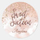 Conjunto de 20 Rosa Brilhantes Dourados com Padrões redondos personalizados cor-de-rosa esbranquiçados. Estas são femininas e elegantes, adoradas com sequências brilhantes de brilho. O script de texto está em uma fonte de caligrafia moderna com um fundo rosa-pinto-pinto-pinto-pinto-claro. Perfeito como simples etiquetas para Favoritos para festas, 16ª parte. Personalize facilmente este autocolante ao adicionar um nome.