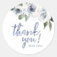 Faux brilha azul-cinza prateado rolo com o roteiro "obrigado você" com azul empoeirado e branco floral, elegante e na moda, obrigado personalizado do excelente que você prefere adesivos.