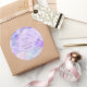 Fundo brilhante em vários tons de roxo e azul com um círculo lavanda contendo suas informações personalizadas. Confira nossa loja para mais opções de adesivos ou marca de pequenas empresas.