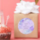 Fundo brilhante em vários tons de roxo e azul com um círculo lavanda contendo suas informações personalizadas. Confira nossa loja para mais opções de adesivos ou marca de pequenos negócios.