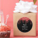 O design de adesivo redondo de Halloween apresenta brilho de sangue vermelho gotejando em um fundo preto! O brilho vermelho e as faíscas enquadram a metade inferior do adesivo. Personalize o texto com sua própria mensagem de Halloween e altere o estilo da fonte para se adequar. O brilho não é um efeito de brilho "real" real, mas um efeito impresso.