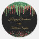 Adesivo Redondo Brilho Vermelho e Verde Esguichando Natal Preto Gl