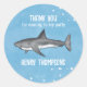 Esta design apresenta um belo e divertido oceano azul-marinho, um favor festa de aniversário infantil, um obrigado que vocês tratam, uma etiqueta para meninos de aniversário, um favor para meninos de aniversário, um aniversário litorâneo no mar litorâneo, um texto para letra na moda, um costume engraçado de água azul personalizado, uma celebração legal única, um estilo minimalista simples, um feliz aniversário de animais marinhos de tubarões