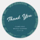 Adesivos redondos de agradecimento apresentam uma fonte branca moderna em um fundo turquesa ousado com acentos geométricos, perfeitos para selar sacolas de brindes de chá de panela ou caixas de presente. Personalize com seu nome e data do chá de panela para um toque elegante e pessoal. Ideal para celebrações contemporâneas e temas de chá de panela sofisticados.
