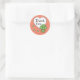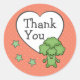 Adesivos de bolinhas de pêssego fofos. Um grande coração branco com as palavras obrigado dentro. No canto inferior direito está um brócolis verde feliz com três estrelas verdes à sua esquerda.