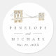 Adicione o seu logotipo de assinatura durante o dia, preparação do casamento, e favorece com estes adesivos de chic elegantes que incluem uma pintura aquosa da ponte Brooklyn Nova Iorque.