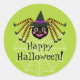Adesivo Redondo Bruxa-Aranha Feliz Halloween