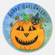 Adesivo Redondo Bruxa de Aranha e Abóbora do Halloween