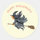 Adesivo Redondo Bruxa voadora aquarela de Halloween