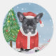 Adesivo Redondo Bulldog Francês em Neve com Presentes de Natal