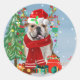 Adesivo Redondo Bulldog Inglês em Neve com Presentes de Natal