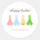 O Bunnies Sticker apresenta a parte de trás de coelhos fofos de cores rosa, azul, castanho e verde, alinhados de forma clara. Uma etiqueta adesiva divertida perfeita para a Páscoa. © Manhã 6