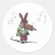 As notas musicais estão flutuando no ar em volta de um coelho que está tocando violino nesta ilustração antiga de Johnny Gruelle para um livro infantil de 1918.