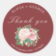 Obrigado de casamento Elegante e minimalista você rodeia adesivo / etiqueta de favorito de casamento com um belo buquê burgundy e pincel de rosas de pénia rosa e um roteiro de tipografia de tendência branca contra um fundo vermelho escuro. ++++++ Personalize com os nomes e iniciais da noiva e do noivo e com o seu texto personalizado!