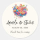 Adesivo Redondo Buquê Flor Laranja E Casamento Azul Obrigado