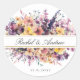 Vinheta redonda clássica de casamento específica do cliente com um design de flor selvagem e fonte com script. Adicione um toque de elegância e personalização à sua mesa de casamento com o nosso adesivo de casamento feito por medida! Com um belo design floral, este adesivo pode ser personalizado com seus nomes e data de casamento em uma fonte moderna, criando um cenário verdadeiramente único e memorável para seu dia especial.