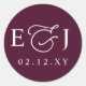 Adesivo Redondo Burgundy Modern Initials Monogram Wedding