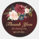 Adesivo Redondo Burgundy Red Marinho Floral Boho Obrigado