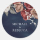 Adesivo Redondo Burgundy Red Roses Floral Navy Blue Wedding Favor