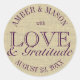 Vinheta de casamento de design com noiva, noiva e noiva e data de casamento. "Com amor e gratidão", obrigado o adesivo do seu favor de casamento com uma cor de texto diferente para combinar com qualquer casamento colorido.