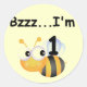 Uma abelha e um texto tão fofinhos que diz "Bzzz... Eu sou 1" em t-shirts de primeiro aniversario de Buzz Bumblebee, fatos de corpo, cartas, autocolantes, canecas, ímanes, sacos de tote e outros presentes de primeiro aniversário.