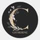 Florial do monograma da letra C. A letra C, em textura castanha ouro, acentua-se com folhas compostas de aquarelas verdes, flores e salpicos de ouro derretidos. Personalizar com o nome na fonte correspondente.