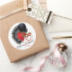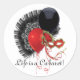 Um adesivo redondo para combinar o nosso convite de "Cabaret" com uma imagem de um ventilador de penas pretas, balões vermelho e preto e uma máscara vermelha. Texto opcional. Ver vinheta de vinilo cortada por medida, convite, envelope, confetti, bolsa de favor, etiqueta de favor, sacos de presente, etiqueta e papel de embalagem. Veja toda a coleção do Cancan Sticker nos CONVITES | Seção Stickers & Labels