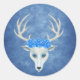 Este adesivo clássico é azul e branco sujo com uma cabeça de cervo branca com uma cara misteriosa e olhos azuis, grandes galhadas e três rosas azuis bonito no topo da cabeça.
