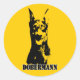 Estou te observando. Uma cabeça de Doberman excelente, esta com a ortografia alemã do nome da raça. Também estará disponível uma ortografia americana. Esta design não funciona bem em camisas escuras.