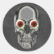 Cabeça de crânio assustadora com colante vermelho de Halloween. Você pode personalizar este adesivo com qualquer texto que desejar, clicando em Personalizar. Por favor, visite minha galeria para ver mais cartões e presentes de Dia das Bruxas. Obrigados para passar por "Smilin' Eyes Treasures"!