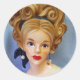 Adesivo Redondo Cabelo Bouffant Lady Head Vase Big Blue Eyes