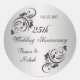 25 Casamento de Aniversário Doente decorada com espirais e flores pretas em fundo prateado. Fácil de personalizar - basta colocar seus nomes e data.